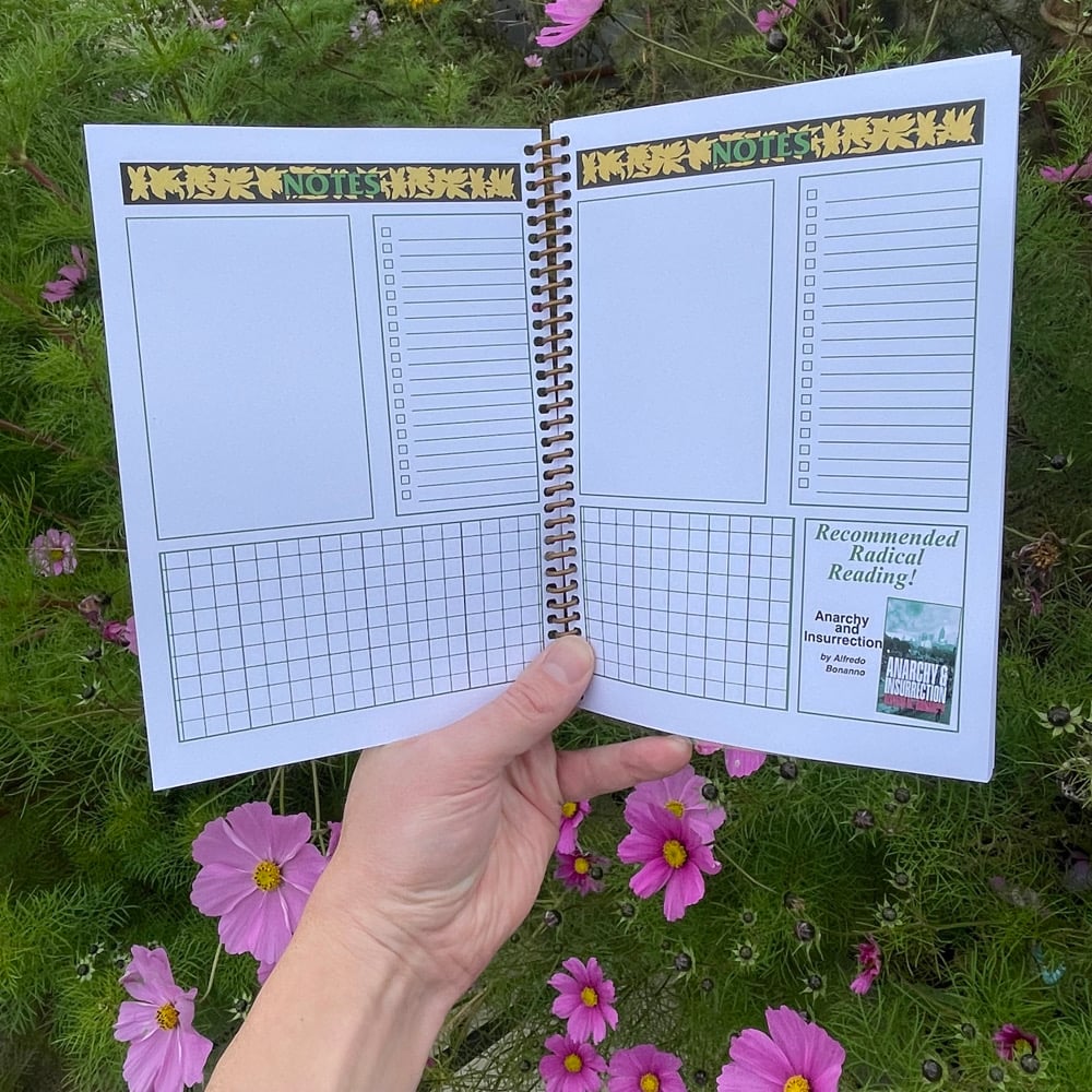 An A5 50-page diary consisting of poster pages, calendar pages and also notes and writing pages too! Each month also has a recommended radical read!